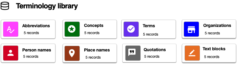 Terminology libraries capture standardised concept definitions, preferred terms, and related metadata.